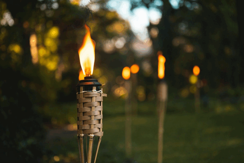 Tiki Torches, for instance, are quite effective against mosquitos, flies, and other nasty pests. They can be filled with liquids that create a smoke/scent that deters mosquitos from coming near the area. It is essential to note that mosquitoes will not be drawn to the flames/smoke, so place them in an area where they will be most effective while ensuring your family’s safety.